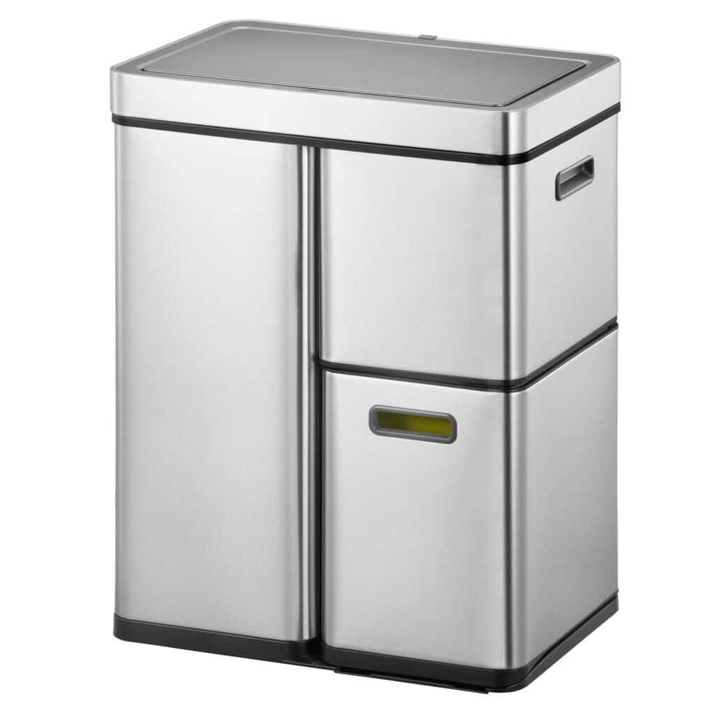 Elle présente une conception empilée idéale pour économiser de l'espace. La poubelle est fabriquée en acier inoxydable brossé et possède un revêtement anti-empreintes digitales. Le couvercle permet d'accéder à un compartiment spacieux avec un seau intérieur en plastique de 30 litres et également un compartiment avec un seau intérieur de 15 litres. En dessous se trouve un compartiment avec un seau intérieur de 15 litres, facilement accessible par le tiroir coulissant. Le mécanisme de détection garantit une utilisation hygiénique et ferme le couvercle silencieusement. De plus, les sacs à déchets sont faciles à changer grâce au couvercle amovible.