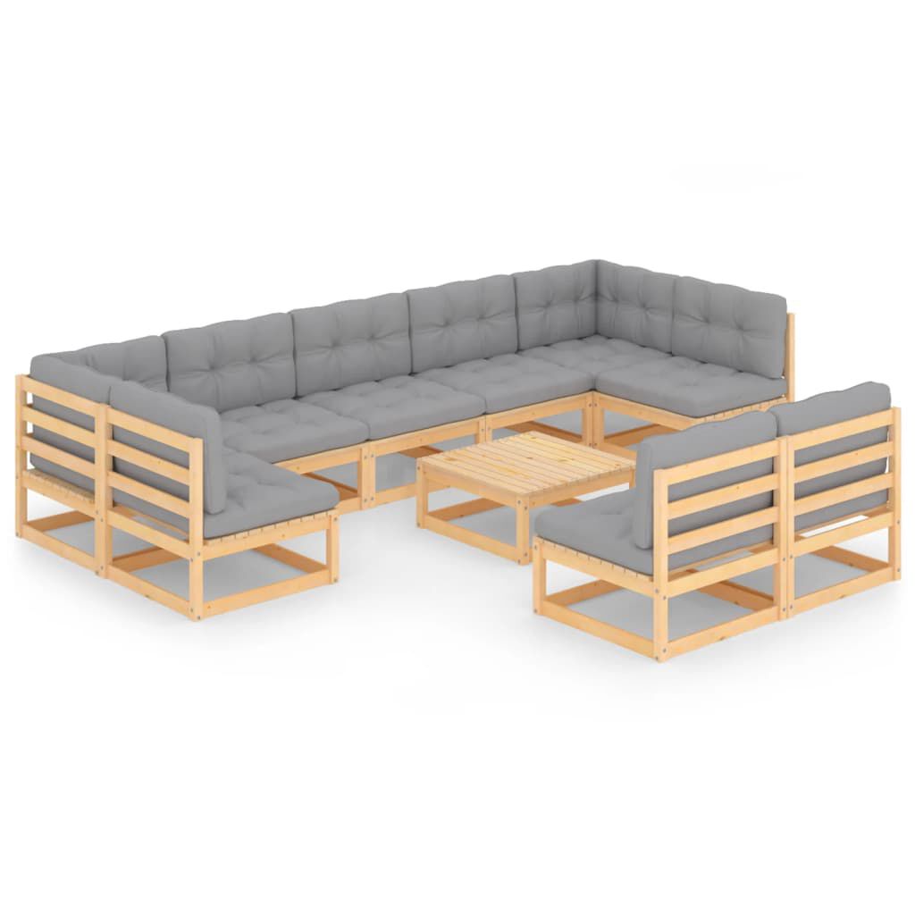 vidaXL Salon de jardin 10 pcs avec coussins Bois de pin massif