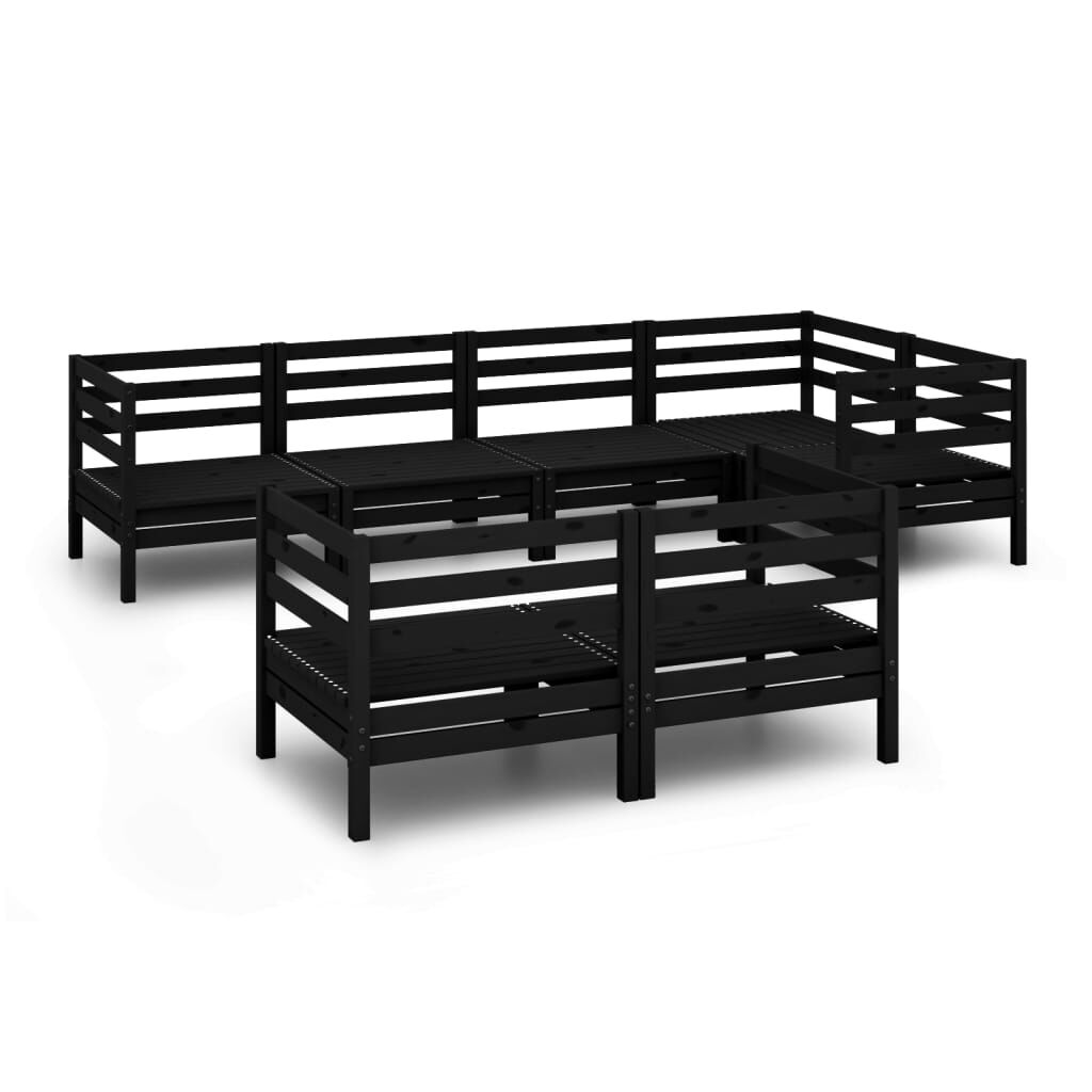 vidaXL Salon de jardin 7 pcs Bois de pin massif Noir