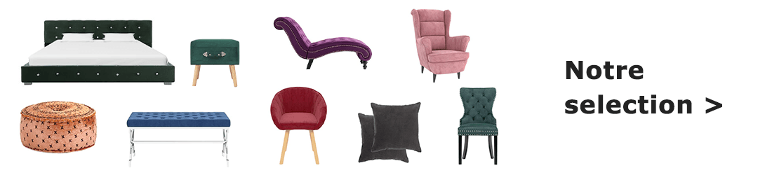Le velours est raffiné par lui-même. Lorsqu'il est utilisé comme point principal dans la décoration d'intérieur, le velours crée un look pas comme les autres. Selon la pièce que vous décorez, choisissez un meuble en velours qui attire toute l'attention. Lorsque vous ajoutez un canapé en velours à votre salon, il fera sans aucun doute briller la pièce. Vous pouvez choisir entre un canapé Chesterfield en velours aux couleurs vives et un canapé minimaliste avec des pieds en métal pour un look plus moderne. À l'aide d'un lit en velours, vous pouvez ajouter de la sophistication à votre chambre à coucher. Si vous souhaitez une création de chambre à coucher élégante, choisissez un design détaillé ou ouvrez votre espace avec des lignes simples aux couleurs neutres. Nous vous recommandons également d'ajouter une chaise en velours à dossier haut pour créer un coin confortable pour les après-midi de détente. Avec des chaises de salle à manger en velours, vous pouvez ajouter une touche de classe à votre salle à manger. Vous pouvez donner le ton ici en choisissant entre un design moderne avec une texture de velours somptueux ou un rembourrage victorien dans un velours plus foncé.